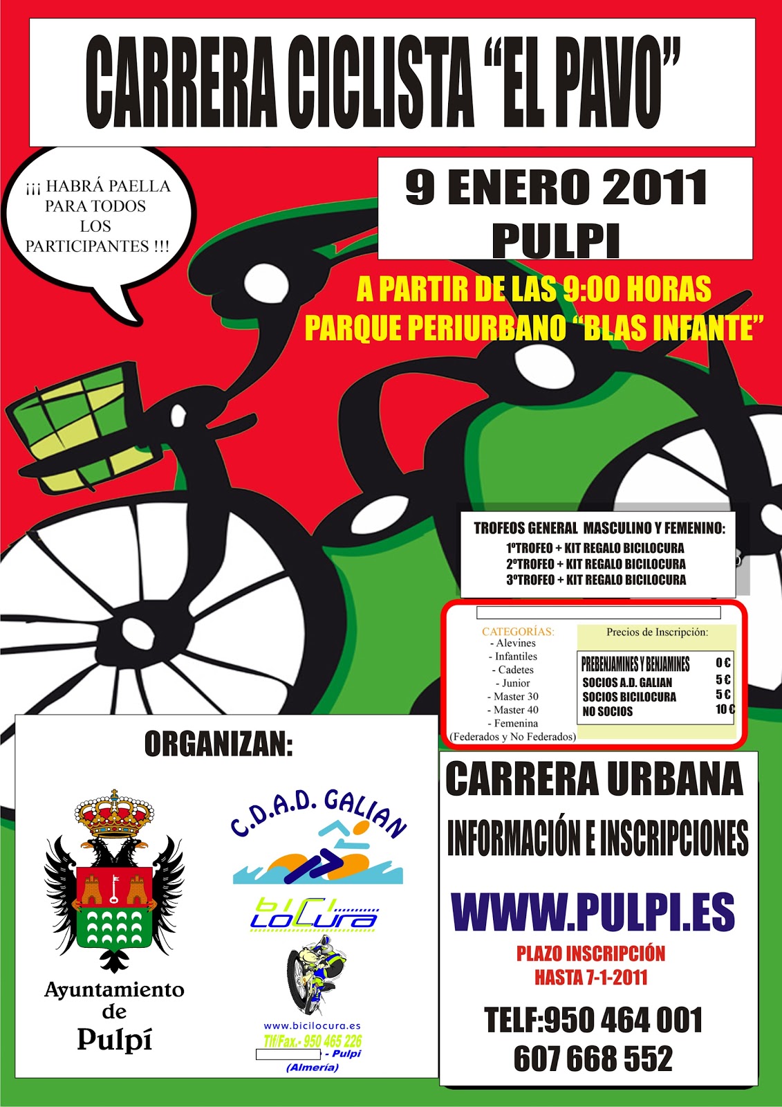Las inscripciones se pueden efectuar hasta el 07/01/2010 a través de la web www.pulpi.es o en la tienda «Bicilocura».