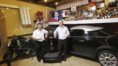 Así, la cesta de este año del restaurante «Mariano», propiedad de Mariano Sanz y Manolo Hernández, incluye un vehículo monovolumen, una moto BMW de 1.000 cc., con su correspondiente casco, y un Mini Coupé biplaza. Además, contiene dos bicicletas eléctricas, una televisión de plasma de 55 pulgadas con conexión a internet, una plataforma vibratoria y 5.000 euros en lotería de Navidad y del Niño de todas las terminaciones.