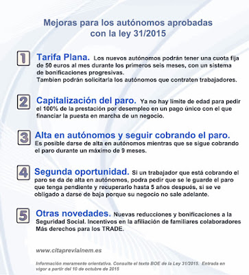Mejoras para los autónomos. Novedades de la ley 31/2015